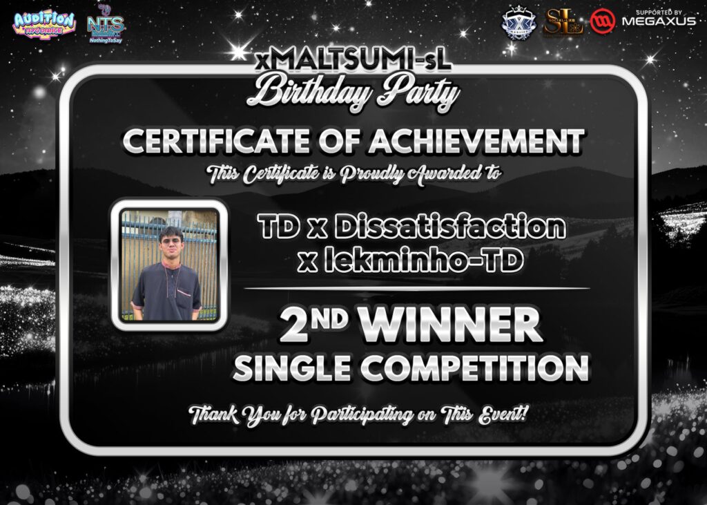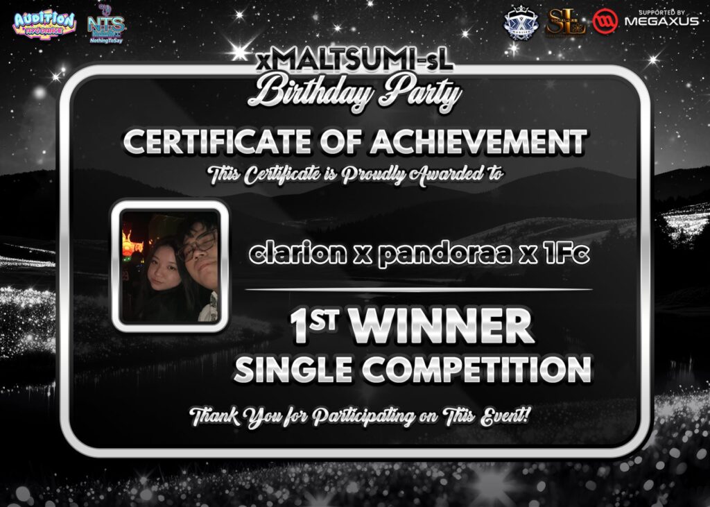 congrats sekali lagi untuk pemenang event kali ini dengan total peserta 128 player !! sangat banyak sekali yaa, tidak lupa juga berterimakasih kepada xMALTSUMI-sL as kak yenny yang sudah memsponsor event kali ini sangat mantap ! dan juga caster kesayangan kita bang adwc Mang Black yang udah ngecaster jalan nya event. jika ada saran dan masukan buat team kita NothingToSay boleh langsung ngomong aja yah langsung kita tanggepi ~ see you in the next event !